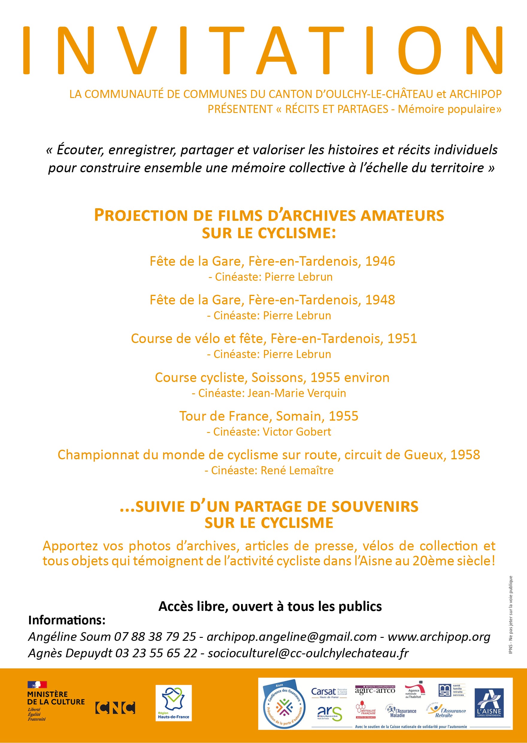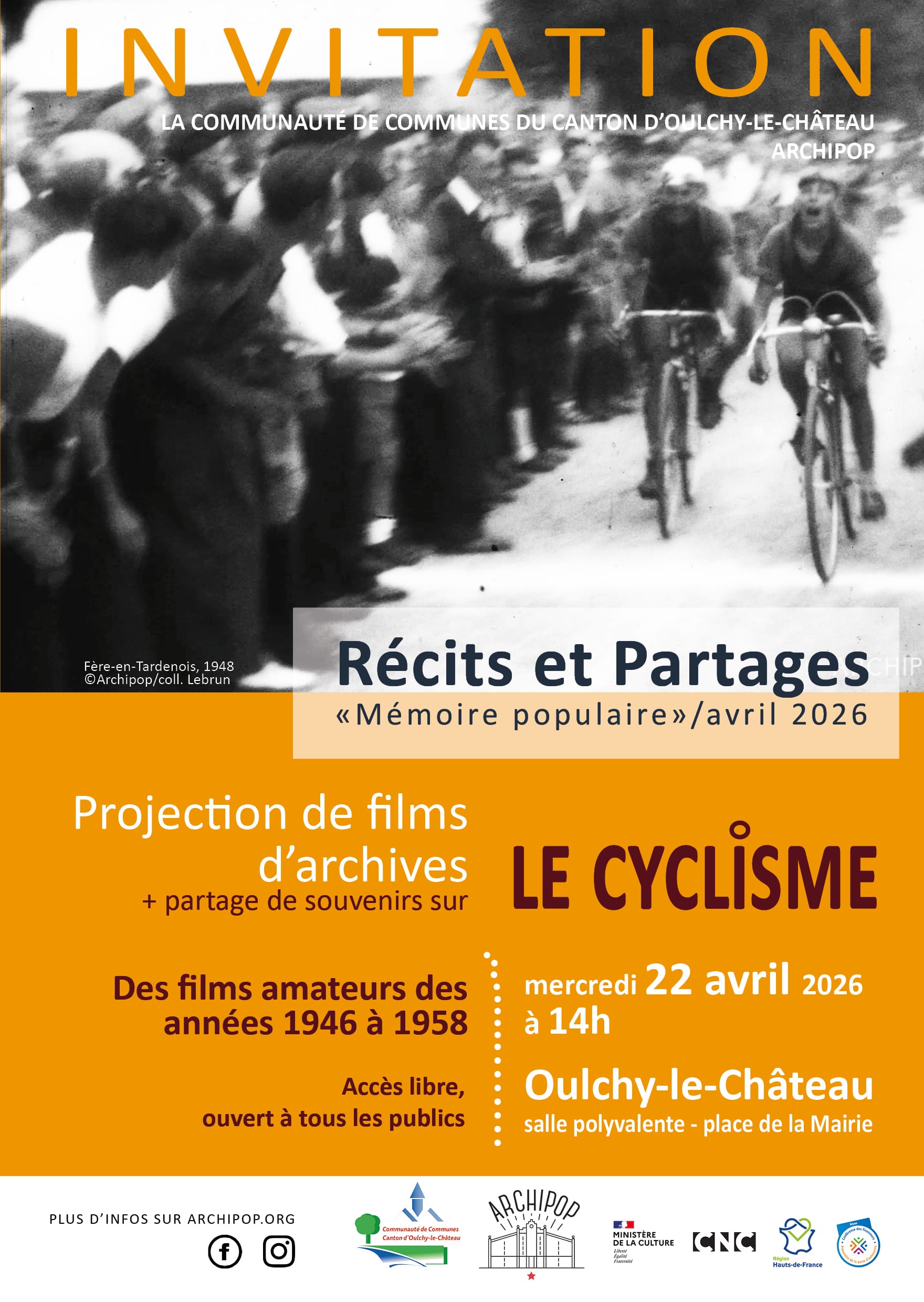 🎬 La rencontre sera également rythmée par une projection de films d’archives sur le cyclisme dans les Hauts-de-France.